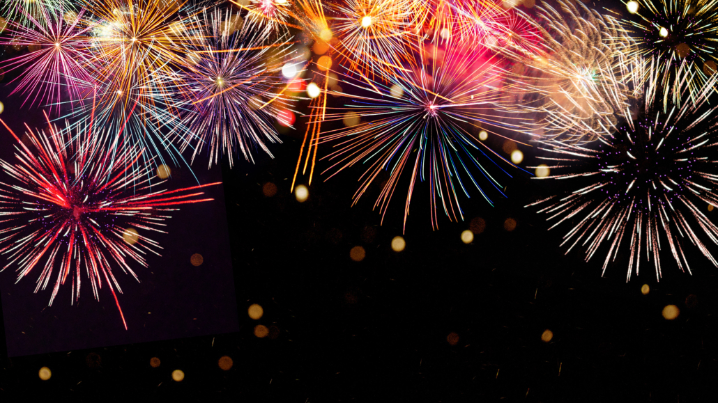 Colorful firework with bokeh background. New Year celebration.